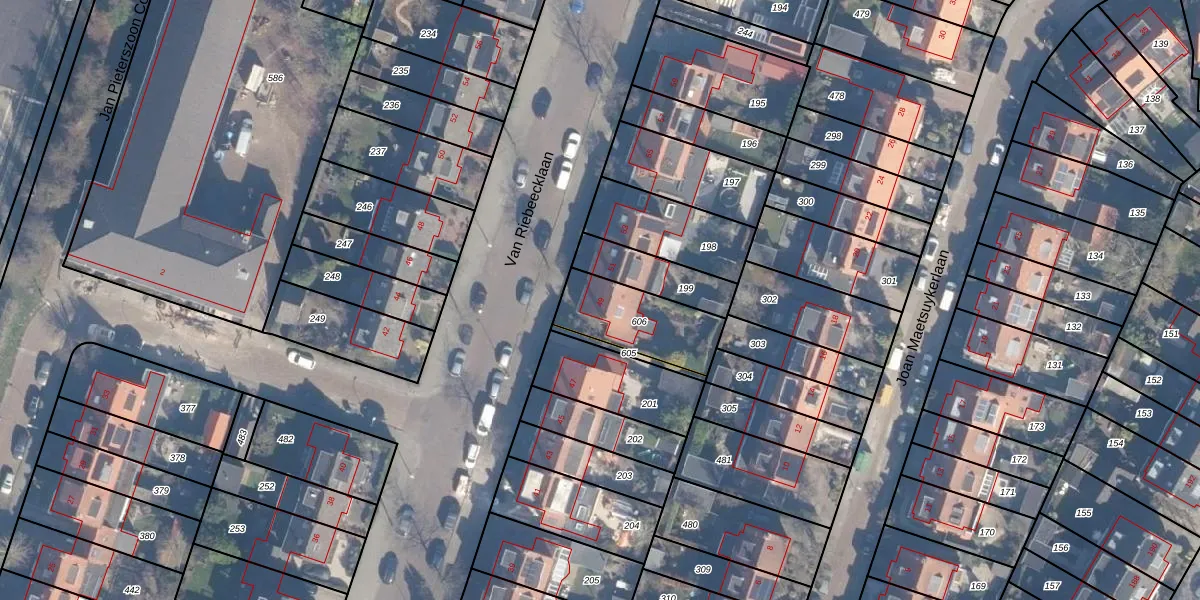 Het perceel waarop Van Riebeecklaan 49 staat heeft een oppervlakte van 273 m². Dit is een middelgroot perceel. De perceeloppervlakte wordt geregistreerd door het Kadaster. Gedetailleerde informatie over de maten van dit perceel kunt u vinden in het rapport Kadastrale kaart met maatvoering van Van Riebeecklaan 49.