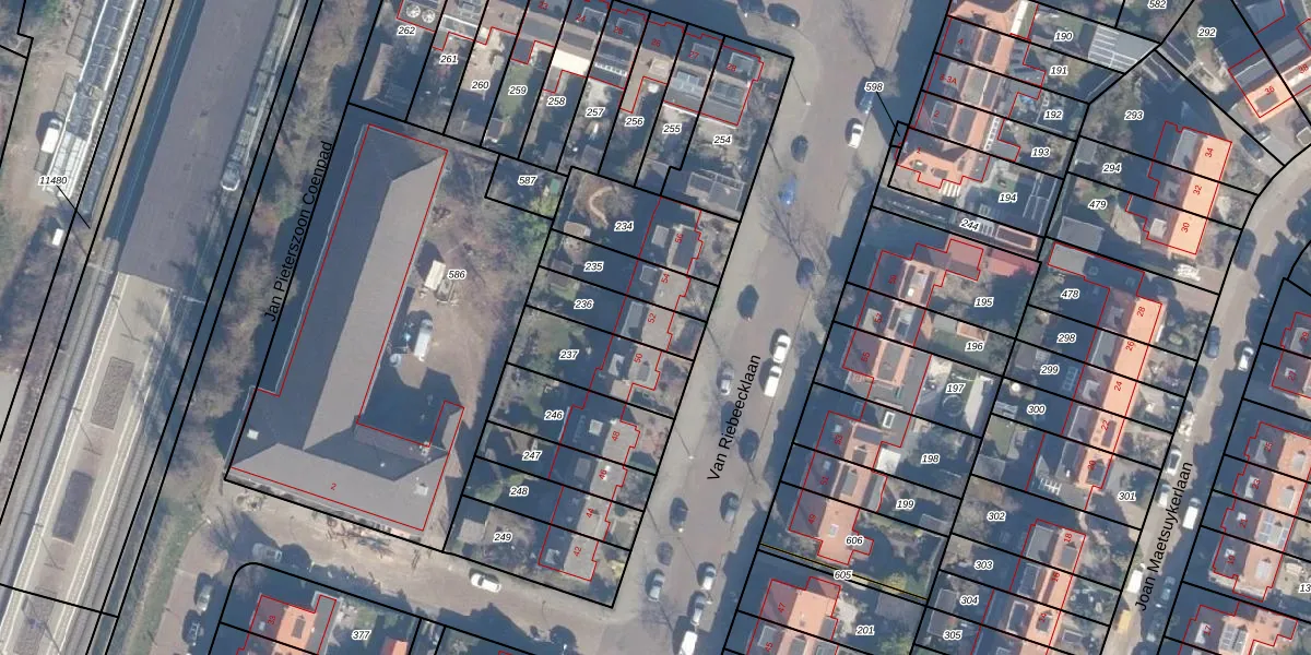 Het perceel waarop Van Riebeecklaan 52 staat heeft een oppervlakte van 165 m². Dit is een middelgroot perceel. De perceeloppervlakte wordt geregistreerd door het Kadaster. Gedetailleerde informatie over de maten van dit perceel kunt u vinden in het rapport Kadastrale kaart met maatvoering van Van Riebeecklaan 52.