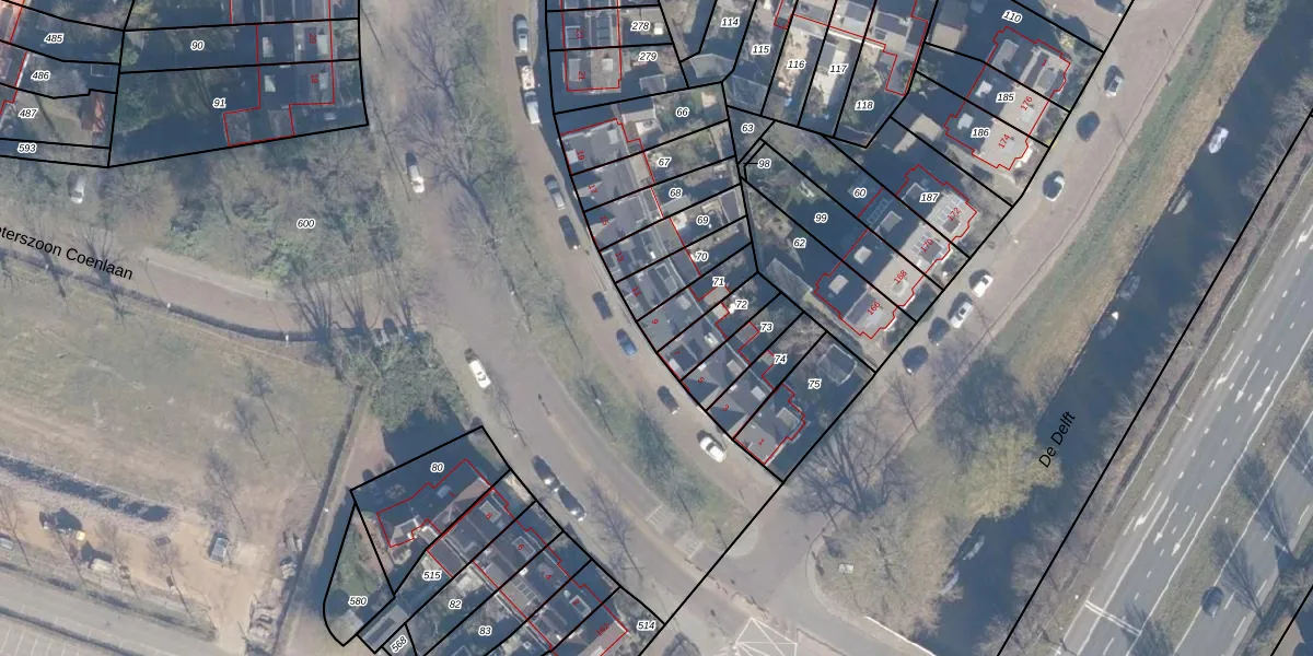 Gebruik de zoekbalk of klik op een perceel voor informatie over de adressen binnen dit perceel.