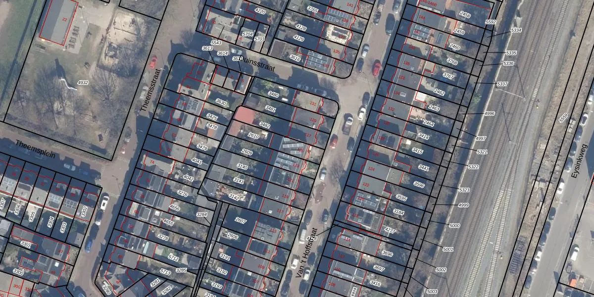 Het perceel waarop Van 't Hoffstraat 125 staat heeft een oppervlakte van 183 m². Dit is een middelgroot perceel. De perceeloppervlakte wordt geregistreerd door het Kadaster. Gedetailleerde informatie over de maten van dit perceel kunt u vinden in het rapport Kadastrale kaart met maatvoering van Van 't Hoffstraat 125.