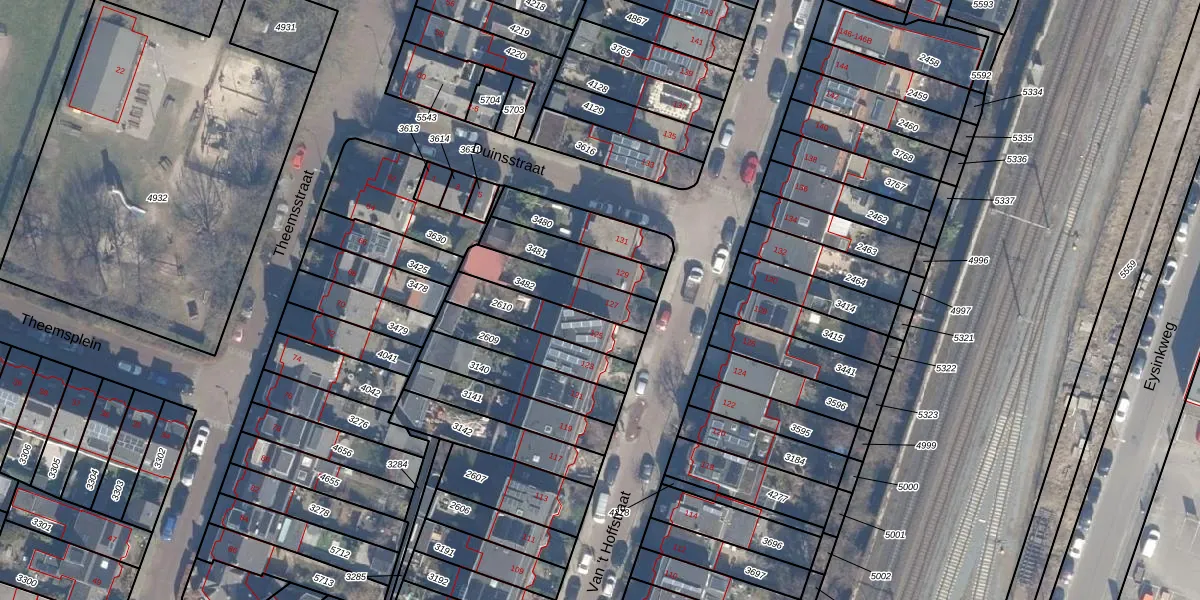 Het perceel waarop Van 't Hoffstraat 127 staat heeft een oppervlakte van 182 m². Dit is een middelgroot perceel. De perceeloppervlakte wordt geregistreerd door het Kadaster. Gedetailleerde informatie over de maten van dit perceel kunt u vinden in het rapport Kadastrale kaart met maatvoering van Van 't Hoffstraat 127.