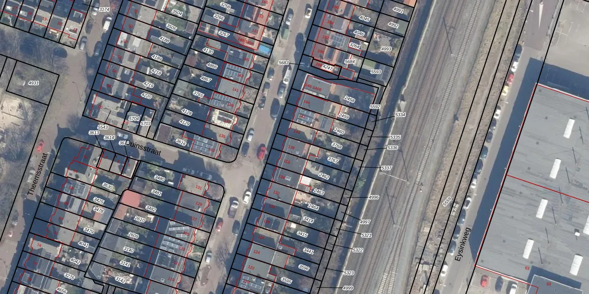 Gebruik de zoekbalk of klik op een perceel voor informatie over de adressen binnen dit perceel.