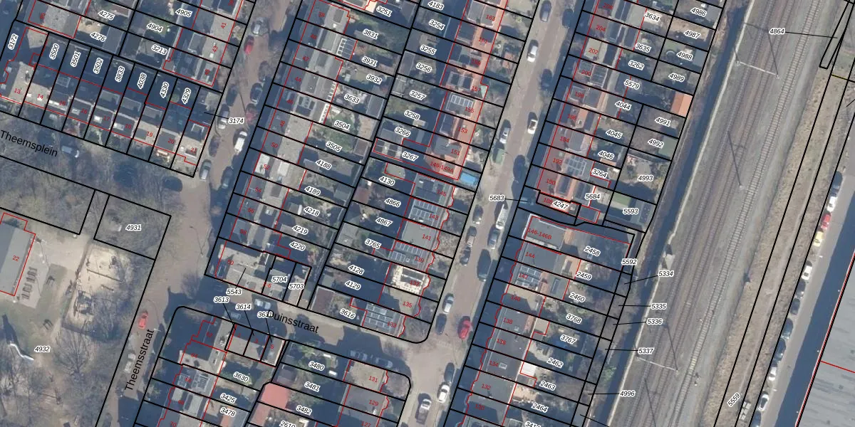 Gebruik de zoekbalk of klik op een perceel voor informatie over de adressen binnen dit perceel.
