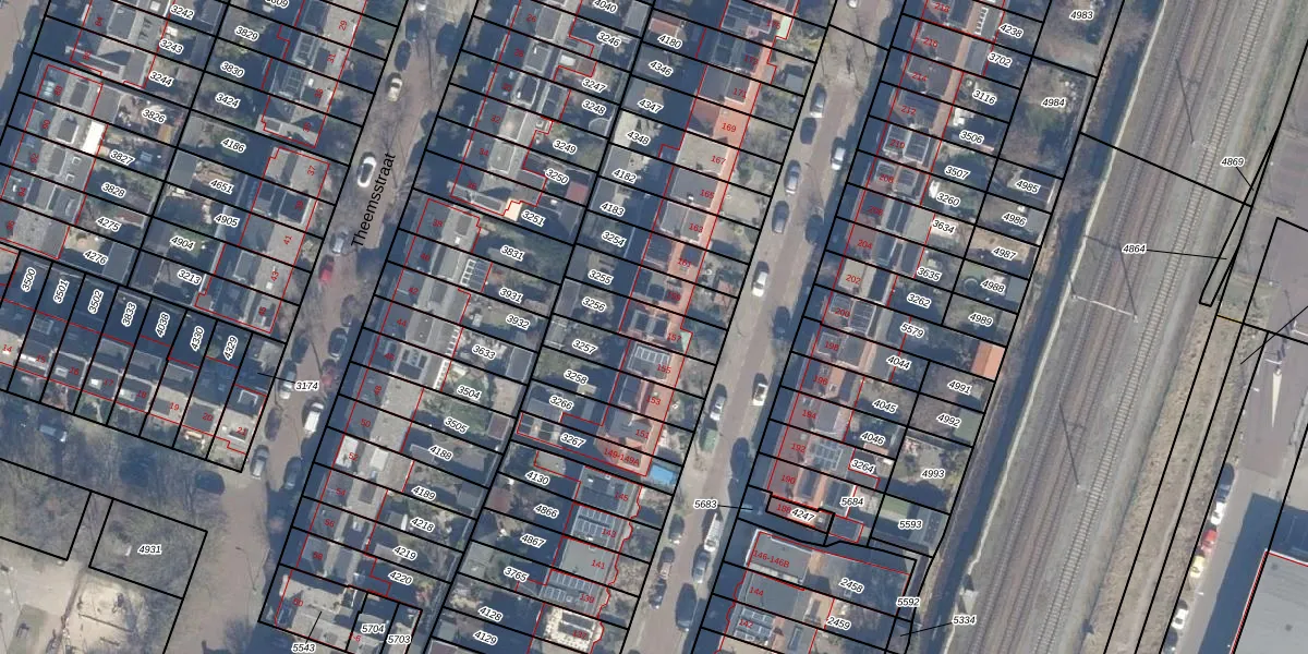 Gebruik de zoekbalk of klik op een perceel voor informatie over de adressen binnen dit perceel.