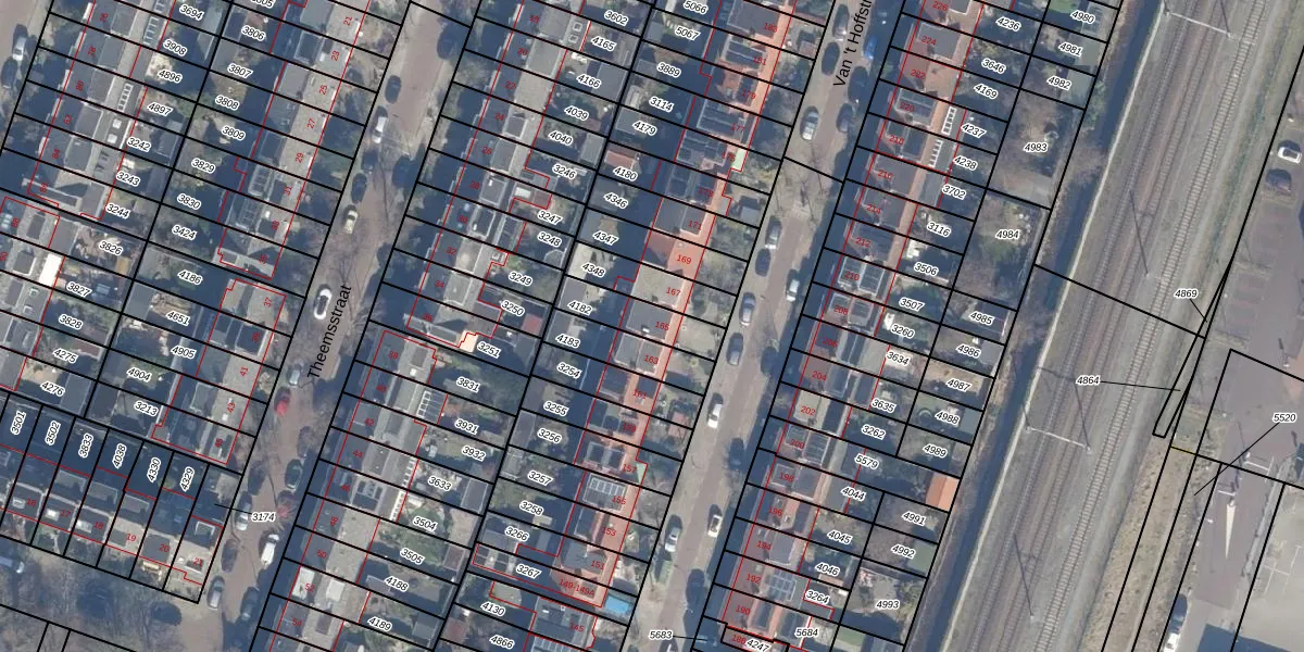 Het perceel waarop Van 't Hoffstraat 165 staat heeft een oppervlakte van 142 m². Dit is een middelgroot perceel. De perceeloppervlakte wordt geregistreerd door het Kadaster. Gedetailleerde informatie over de maten van dit perceel kunt u vinden in het rapport Kadastrale kaart met maatvoering van Van 't Hoffstraat 165.