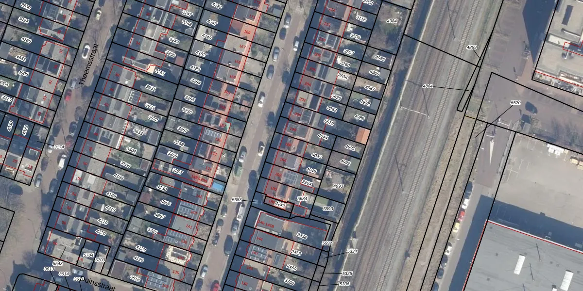 Gebruik de zoekbalk of klik op een perceel voor informatie over de adressen binnen dit perceel.