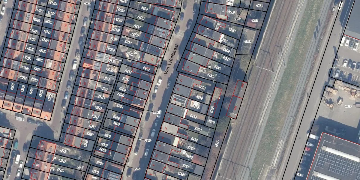 Gebruik de zoekbalk of klik op een perceel voor informatie over de adressen binnen dit perceel.