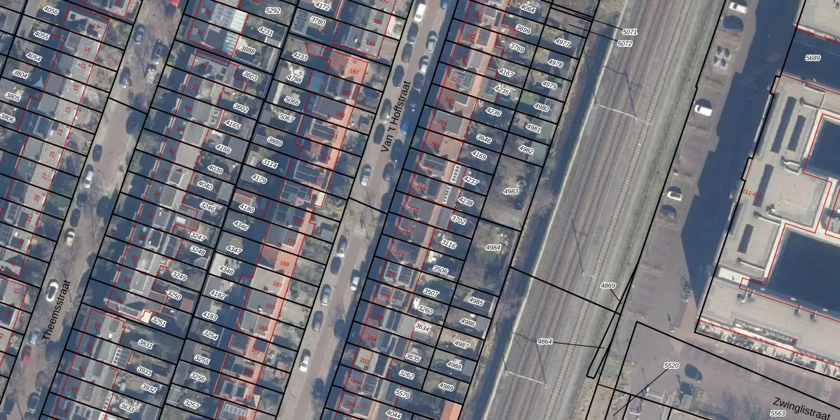 Gebruik de zoekbalk of klik op een perceel voor informatie over de adressen binnen dit perceel.