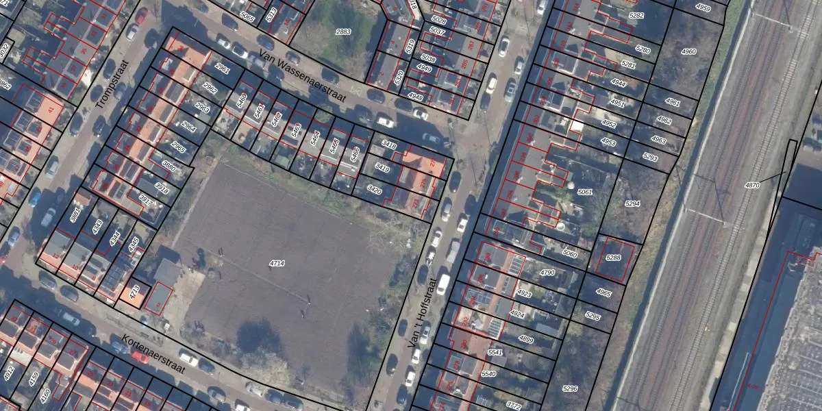 Het perceel waarop Van 't Hoffstraat 273 staat heeft een oppervlakte van 116 m². Dit is een middelgroot perceel. De perceeloppervlakte wordt geregistreerd door het Kadaster. Gedetailleerde informatie over de maten van dit perceel kunt u vinden in het rapport Kadastrale kaart met maatvoering van Van 't Hoffstraat 273.