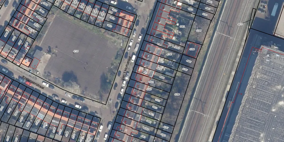 Van 't Hoffstraat 282 is gelegen op kadastraal perceel HLM01I4899. Deze kadastrale aanduiding is uniek en wordt gebruikt door het Kadaster om eigendomsrechten en andere zakelijke rechten vast te leggen. Het perceel maakt onderdeel uit van de kadastrale gemeente Haarlem.
