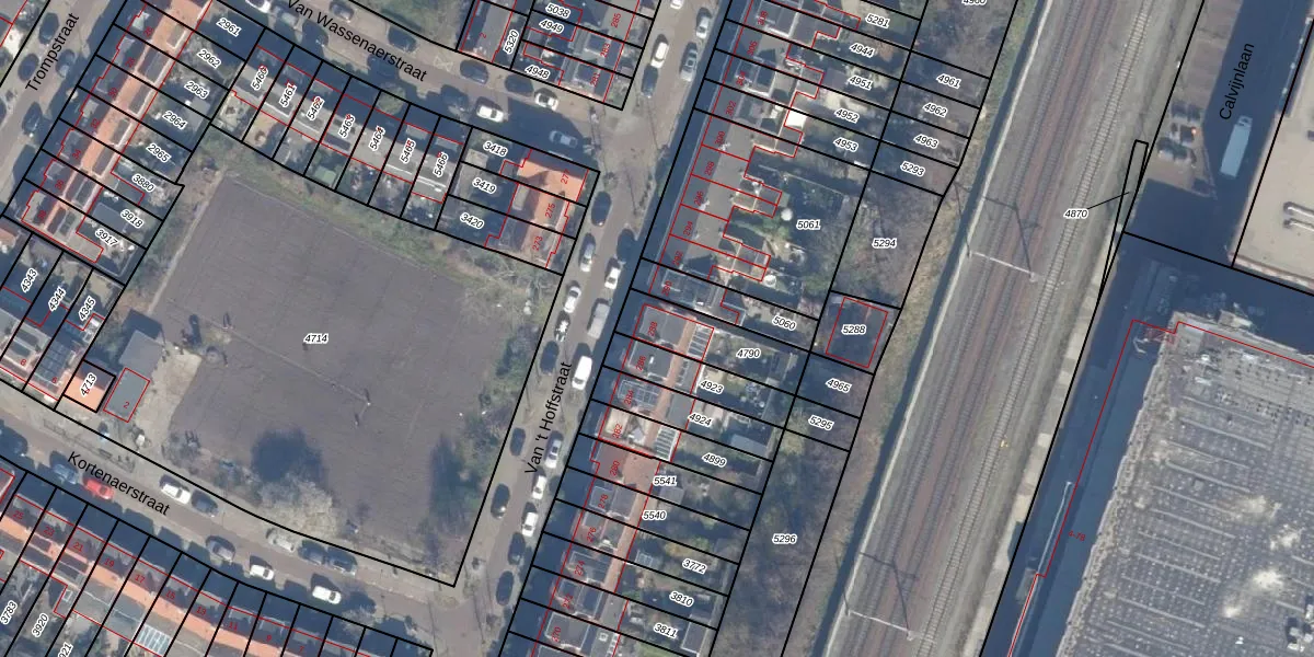 Het perceel waarop Van 't Hoffstraat 288 staat heeft een oppervlakte van 208 m². Dit is een middelgroot perceel. De perceeloppervlakte wordt geregistreerd door het Kadaster. Gedetailleerde informatie over de maten van dit perceel kunt u vinden in het rapport Kadastrale kaart met maatvoering van Van 't Hoffstraat 288.