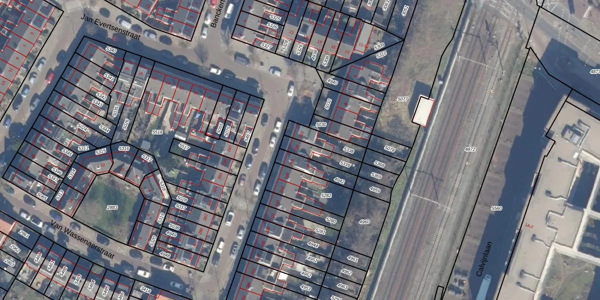 Gebruik de zoekbalk of klik op een perceel voor informatie over de adressen binnen dit perceel.