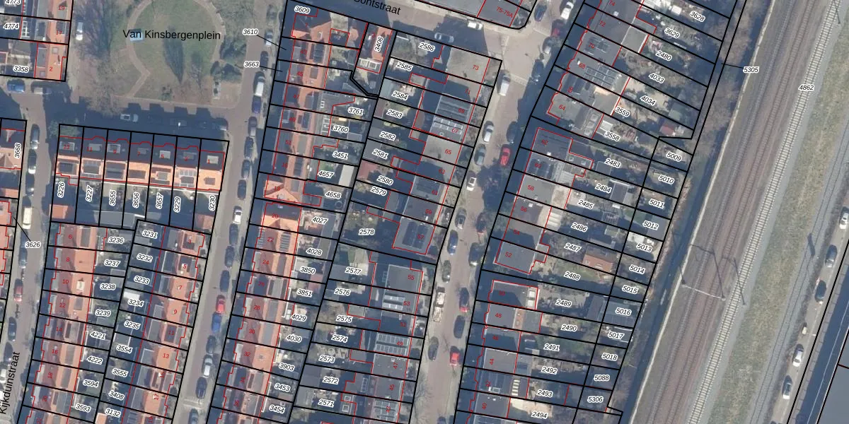 Gebruik de zoekbalk of klik op een perceel voor informatie over de adressen binnen dit perceel.