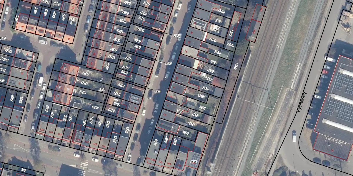 Gebruik de zoekbalk of klik op een perceel voor informatie over de adressen binnen dit perceel.