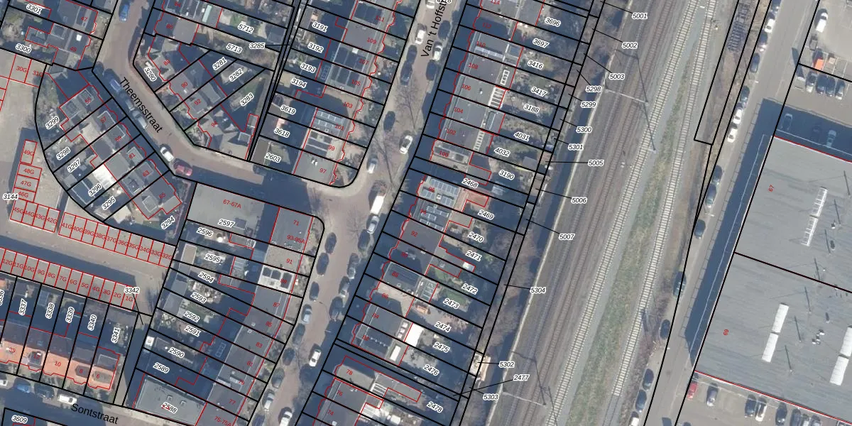 Van 't Hoffstraat 94 is gelegen op kadastraal perceel HLM01I2470. Deze kadastrale aanduiding is uniek en wordt gebruikt door het Kadaster om eigendomsrechten en andere zakelijke rechten vast te leggen. Het perceel maakt onderdeel uit van de kadastrale gemeente Haarlem.