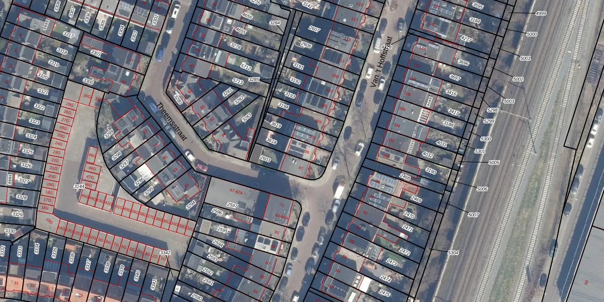 Het perceel waarop Van 't Hoffstraat 99 staat heeft een oppervlakte van 140 m². Dit is een middelgroot perceel. De perceeloppervlakte wordt geregistreerd door het Kadaster. Gedetailleerde informatie over de maten van dit perceel kunt u vinden in het rapport Kadastrale kaart met maatvoering van Van 't Hoffstraat 99.