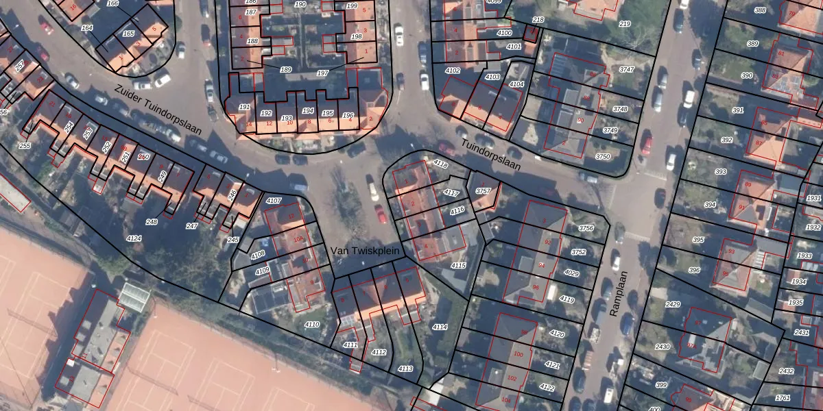 Het perceel waarop Van Twiskplein 2 staat heeft een oppervlakte van 105 m². Dit is een middelgroot perceel. De perceeloppervlakte wordt geregistreerd door het Kadaster. Gedetailleerde informatie over de maten van dit perceel kunt u vinden in het rapport Kadastrale kaart met maatvoering van Van Twiskplein 2.