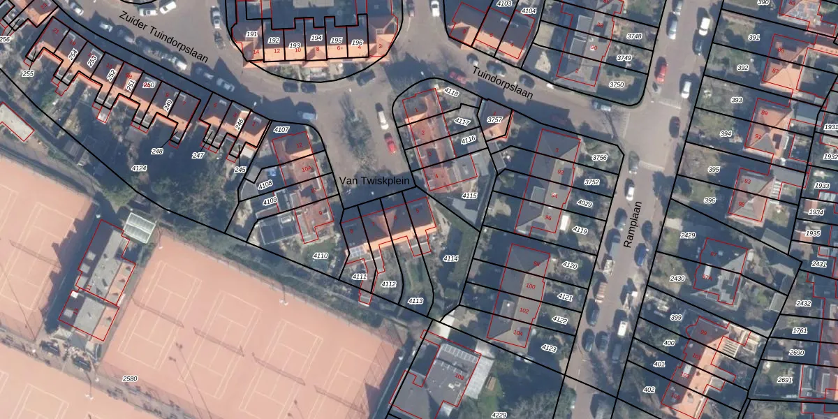 Het perceel waarop Van Twiskplein 5 staat heeft een oppervlakte van 300 m². Dit is een groot perceel. De perceeloppervlakte wordt geregistreerd door het Kadaster. Gedetailleerde informatie over de maten van dit perceel kunt u vinden in het rapport Kadastrale kaart met maatvoering van Van Twiskplein 5.
