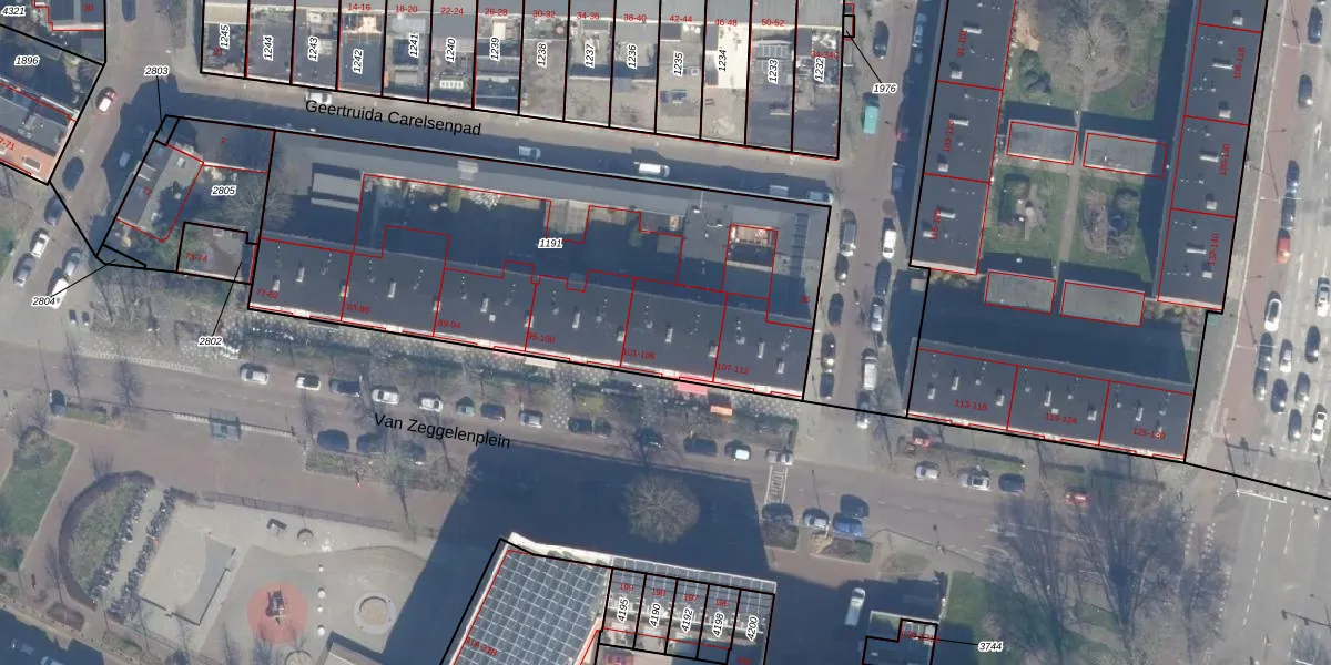 Van Zeggelenplein 103 is gelegen op kadastraal perceel HLM02P1191. Deze kadastrale aanduiding is uniek en wordt gebruikt door het Kadaster om eigendomsrechten en andere zakelijke rechten vast te leggen. Het perceel maakt onderdeel uit van de kadastrale gemeente Haarlem.