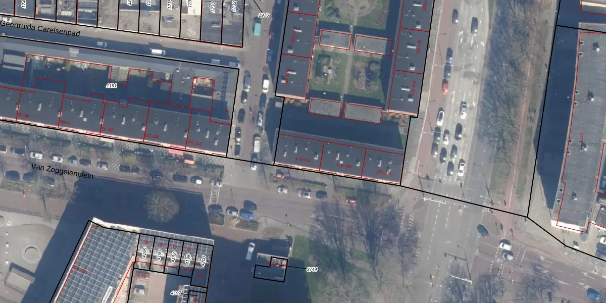 Van Zeggelenplein 116 is gelegen op kadastraal perceel HLM02P1172. Deze kadastrale aanduiding is uniek en wordt gebruikt door het Kadaster om eigendomsrechten en andere zakelijke rechten vast te leggen. Het perceel maakt onderdeel uit van de kadastrale gemeente Haarlem.
