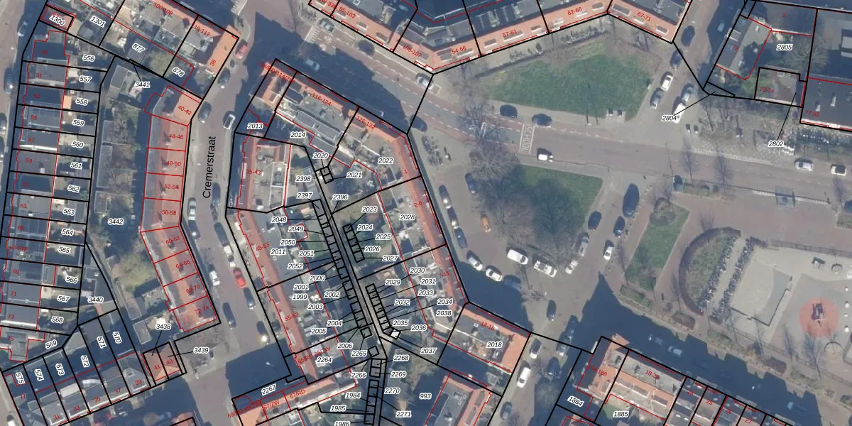 Het adres ligt op het perceel HLM02-P-2028, dat zich in de kadastrale gemeente Haarlem bevindt. Het perceel is kleiner dan gemiddeld in Haarlem. Het perceel is 372 m² groot, terwijl het gemiddelde ligt op 1125,45 m². De grootste perceeloppervlakte in de kadastrale gemeente is 46,4 ha. De kleinste oppervlakte bedraagt 0 m². Er zijn 5 adressen aanwezig op het perceel. De laatste wijziging in het de Basisregistratie Kadaster (BRK) was op 19-03-2009.