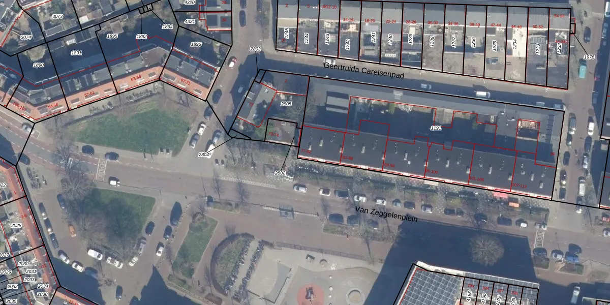 Het perceel waarop Van Zeggelenplein 77 staat heeft een oppervlakte van 2380 m². Dit is een zeer groot perceel. De perceeloppervlakte wordt geregistreerd door het Kadaster. Gedetailleerde informatie over de maten van dit perceel kunt u vinden in het rapport Kadastrale kaart met maatvoering van Van Zeggelenplein 77.