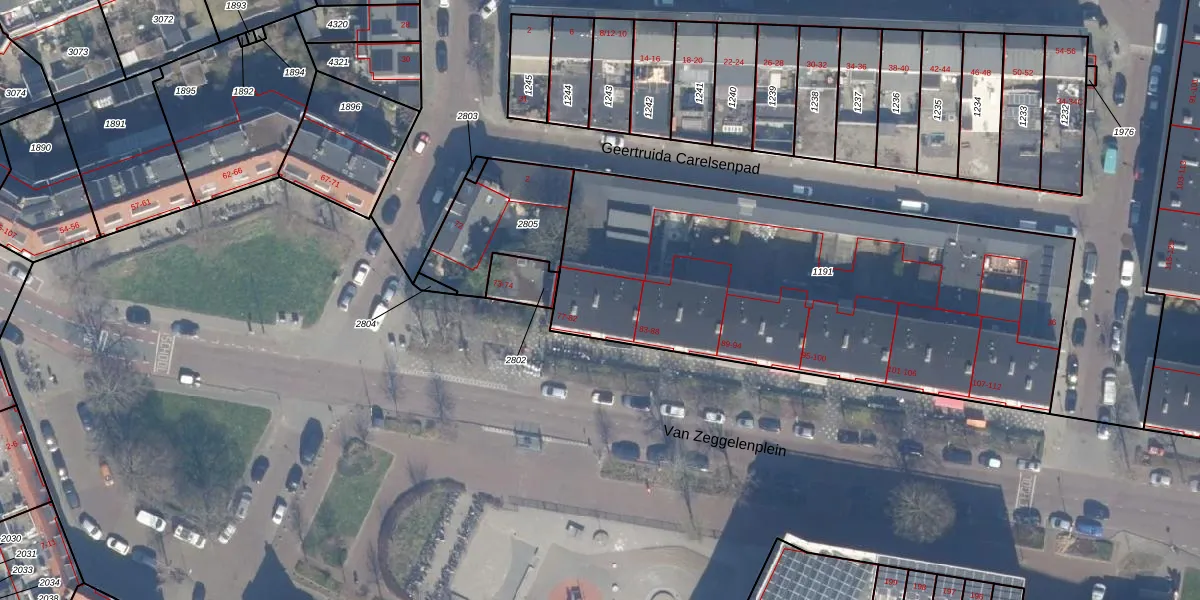 Het perceel waarop Van Zeggelenplein 79 staat heeft een oppervlakte van 2380 m². Dit is een zeer groot perceel. De perceeloppervlakte wordt geregistreerd door het Kadaster. Gedetailleerde informatie over de maten van dit perceel kunt u vinden in het rapport Kadastrale kaart met maatvoering van Van Zeggelenplein 79.