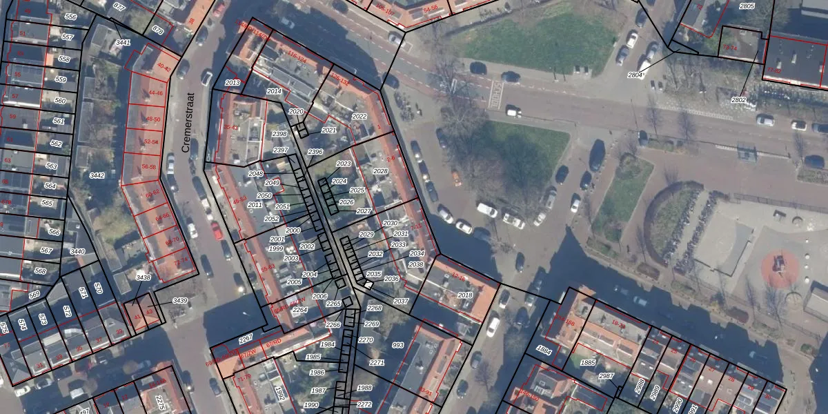 Het adres ligt op het perceel HLM02-P-2038, dat zich in de kadastrale gemeente Haarlem bevindt. Het perceel is kleiner dan gemiddeld in Haarlem. Het perceel is 423 m² groot, terwijl het gemiddelde ligt op 1124,3 m². De grootste perceeloppervlakte in de kadastrale gemeente is 46,4 ha. De kleinste oppervlakte bedraagt 0 m². Er zijn 5 adressen aanwezig op het perceel. In de Basisregistratie Kadaster (BRK) werden de grenzen van het perceel geregistreerd op 19-03-2009.