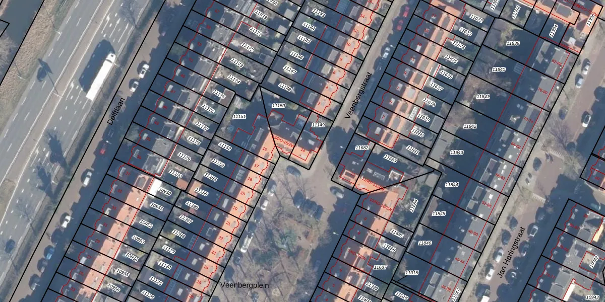 Het perceel waarop Veenbergplein 14 staat heeft een oppervlakte van 141 m². Dit is een middelgroot perceel. De perceeloppervlakte wordt geregistreerd door het Kadaster. Gedetailleerde informatie over de maten van dit perceel kunt u vinden in het rapport Kadastrale kaart met maatvoering van Veenbergplein 14.