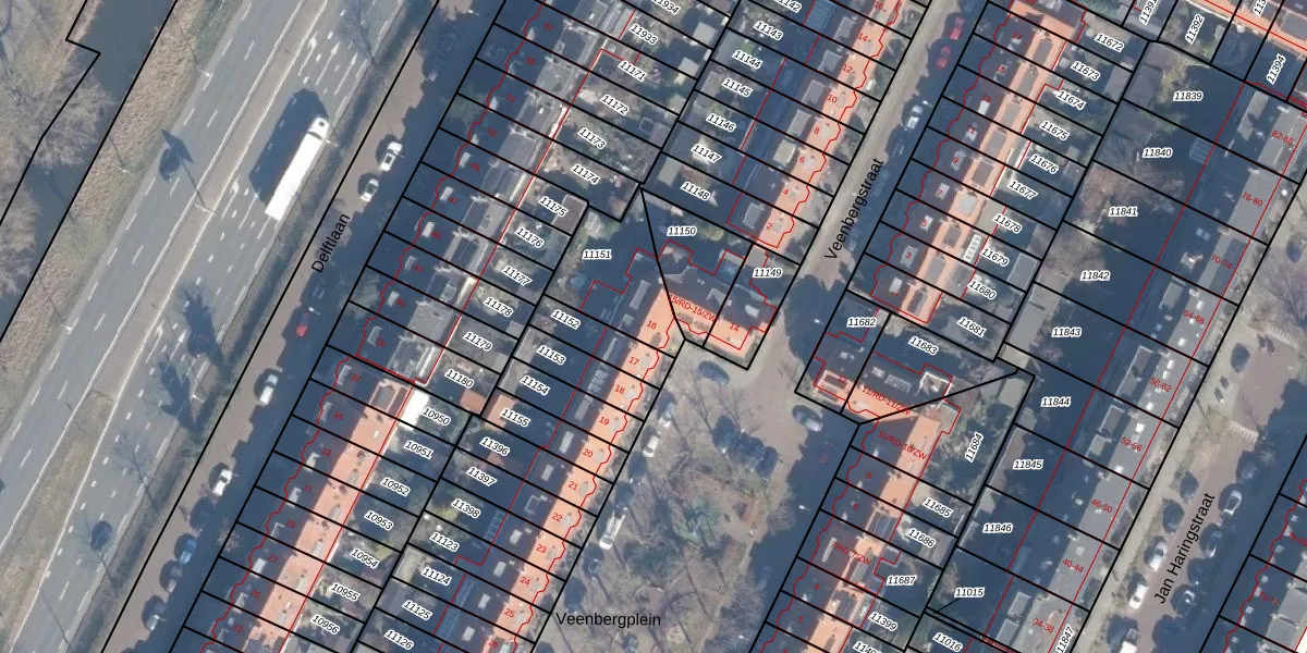 Het perceel waarop Veenbergplein 16 staat heeft een oppervlakte van 285 m². Dit is een middelgroot perceel. De perceeloppervlakte wordt geregistreerd door het Kadaster. Gedetailleerde informatie over de maten van dit perceel kunt u vinden in het rapport Kadastrale kaart met maatvoering van Veenbergplein 16.