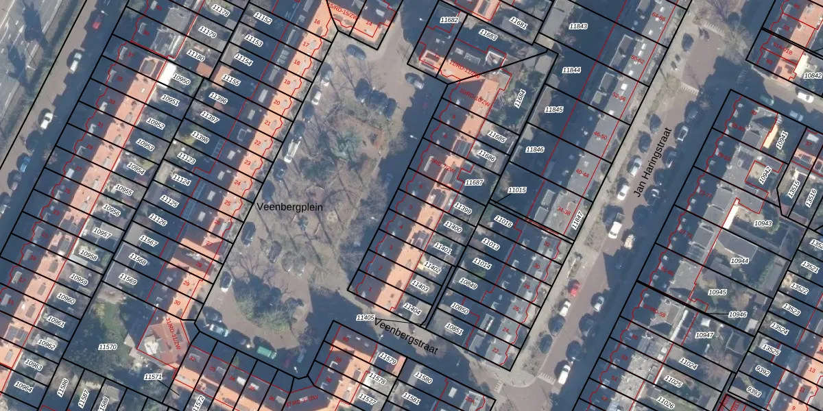 Gebruik de zoekbalk of klik op een perceel voor informatie over de adressen binnen dit perceel.
