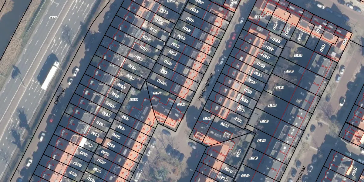 Gebruik de zoekbalk of klik op een perceel voor informatie over de adressen binnen dit perceel.