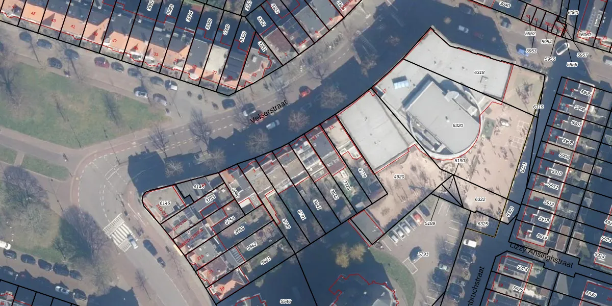 Het perceel waarop Velserstraat 9 staat heeft een oppervlakte van 187 m². Dit is een middelgroot perceel. De perceeloppervlakte wordt geregistreerd door het Kadaster. Gedetailleerde informatie over de maten van dit perceel kunt u vinden in het rapport Kadastrale kaart met maatvoering van Velserstraat 9.