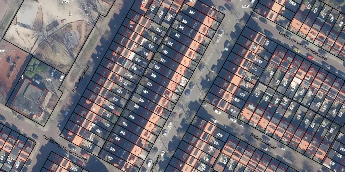 Gebruik de zoekbalk of klik op een perceel voor informatie over de adressen binnen dit perceel.