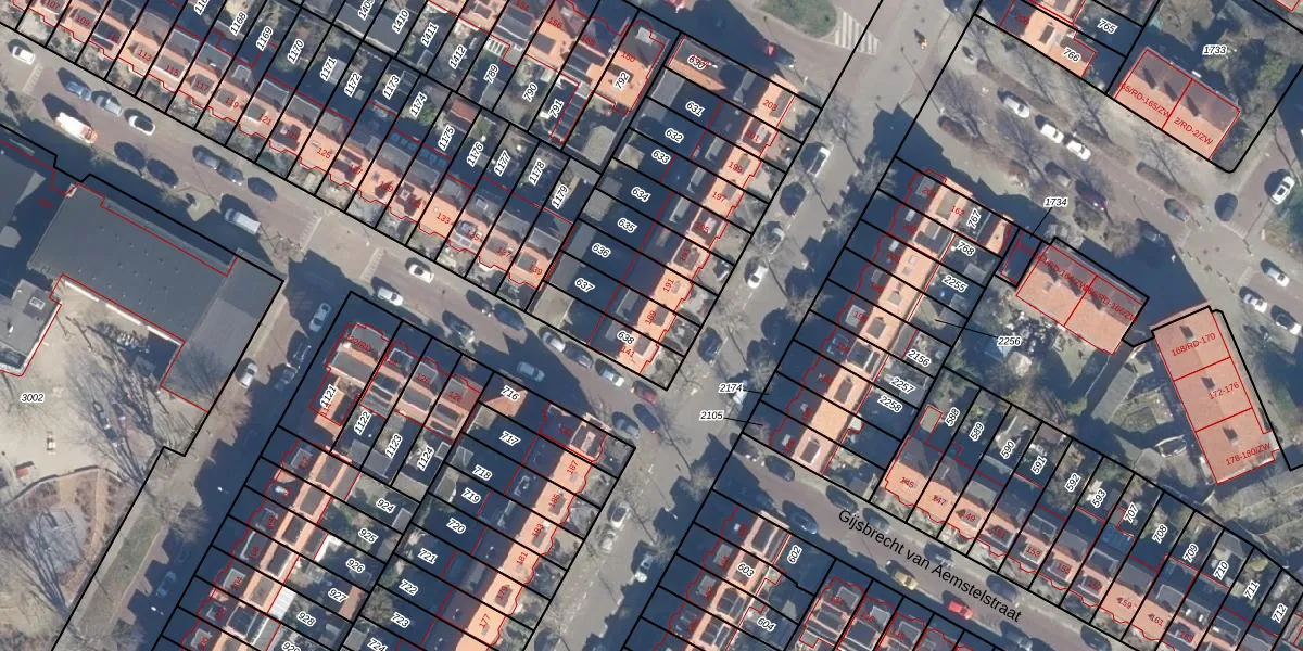 Gebruik de zoekbalk of klik op een perceel voor informatie over de adressen binnen dit perceel.
