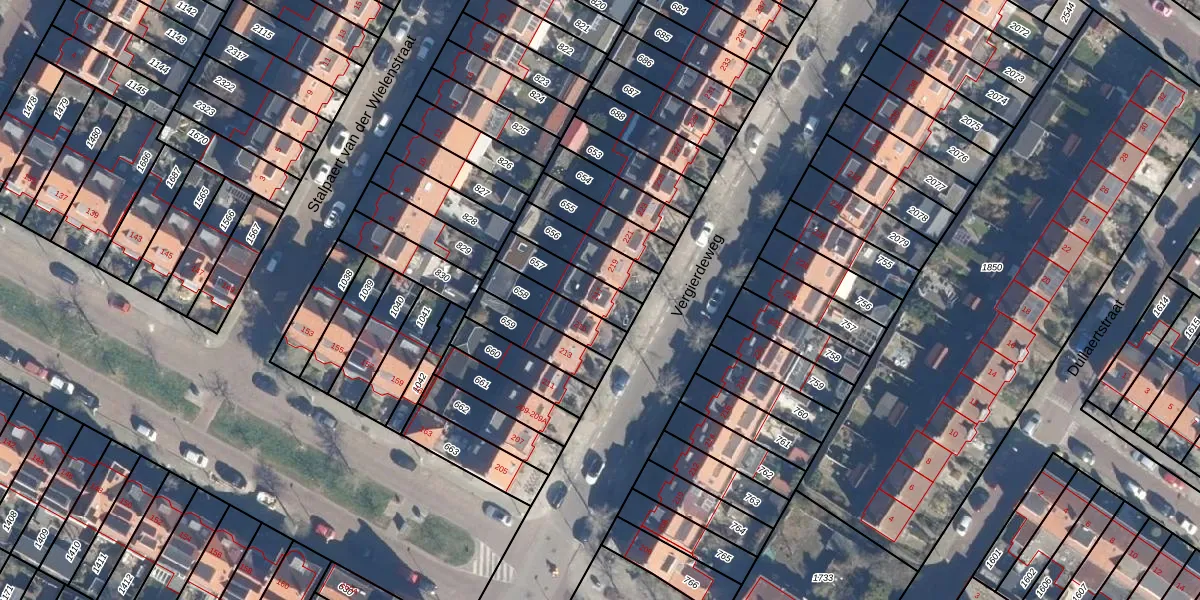 Gebruik de zoekbalk of klik op een perceel voor informatie over de adressen binnen dit perceel.