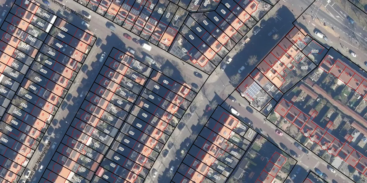 Gebruik de zoekbalk of klik op een perceel voor informatie over de adressen binnen dit perceel.