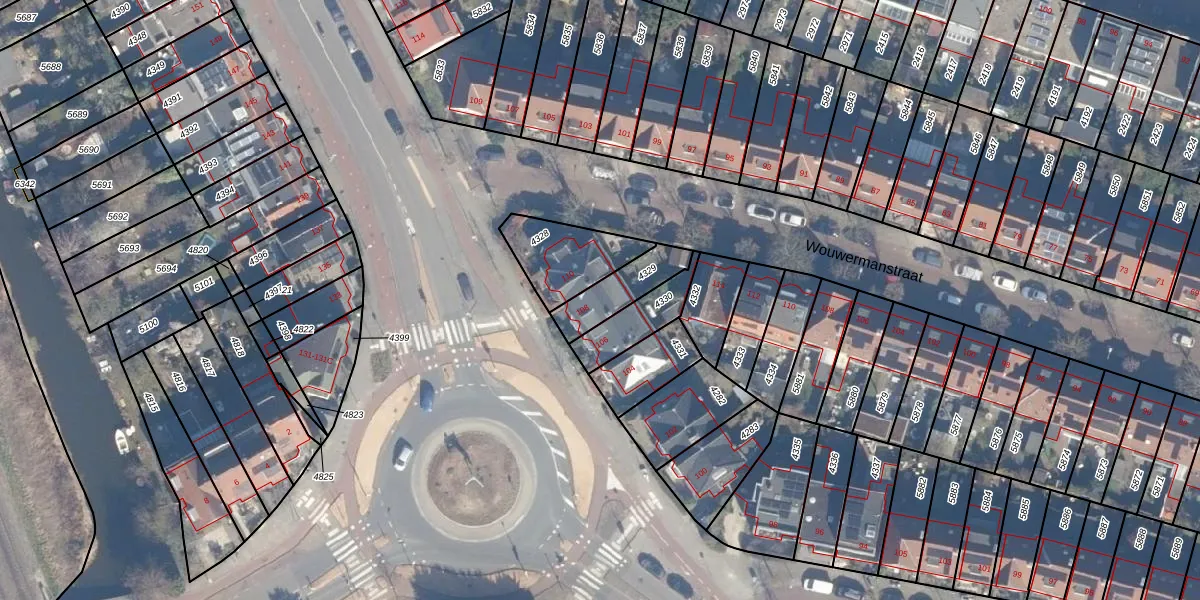 Gebruik de zoekbalk of klik op een perceel voor informatie over de adressen binnen dit perceel.