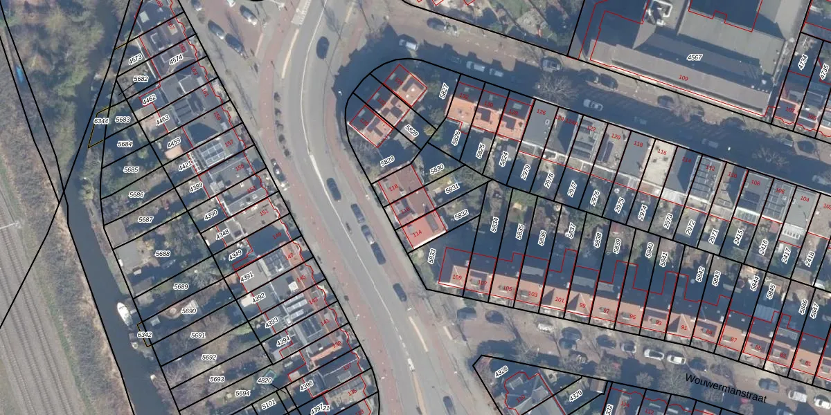 Het adres ligt op het perceel HLM01-A-5831, dat zich in de kadastrale gemeente Haarlem bevindt. Het perceel is 150 m² groot. Dat is kleiner dan de gemiddelde perceeloppervlakte in Haarlem, dat op 328,3 m² ligt. De grootste perceeloppervlakte in de kadastrale gemeente is 13,9 ha. De kleinste oppervlakte bedraagt 0 m². Er zijn geen andere adressen aanwezig op het perceel. De laatste wijziging in het de Basisregistratie Kadaster (BRK) was op 02-03-2012.
