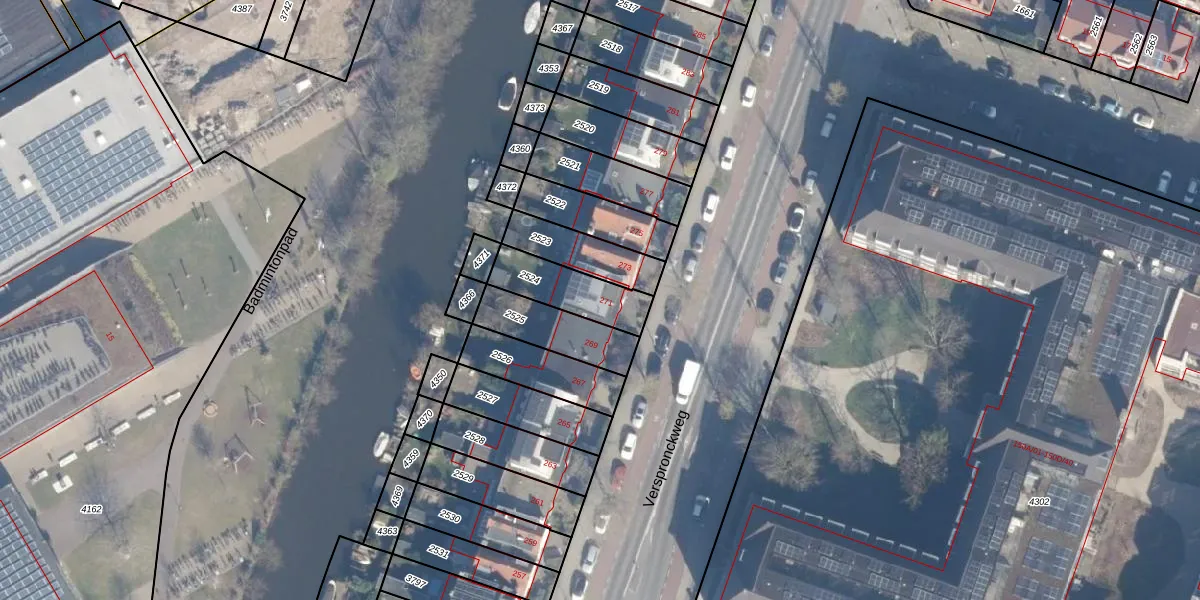 Verspronckweg 271 is gelegen op kadastraal perceel HLM01G2524. Deze kadastrale aanduiding is uniek en wordt gebruikt door het Kadaster om eigendomsrechten en andere zakelijke rechten vast te leggen. Het perceel maakt onderdeel uit van de kadastrale gemeente Haarlem.