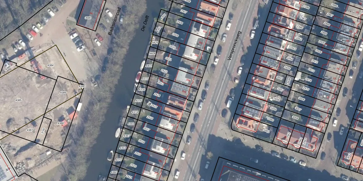 Gebruik de zoekbalk of klik op een perceel voor informatie over de adressen binnen dit perceel.