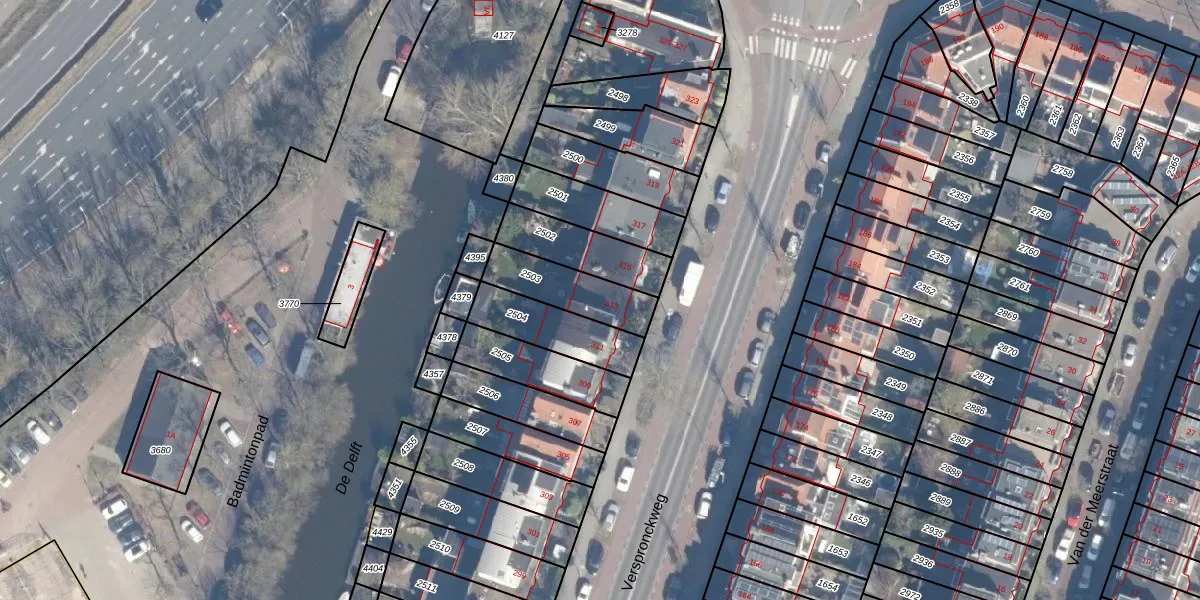 Gebruik de zoekbalk of klik op een perceel voor informatie over de adressen binnen dit perceel.
