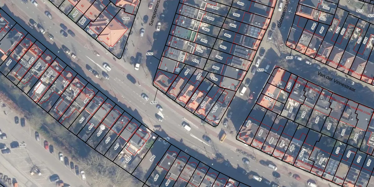 Gebruik de zoekbalk of klik op een perceel voor informatie over de adressen binnen dit perceel.