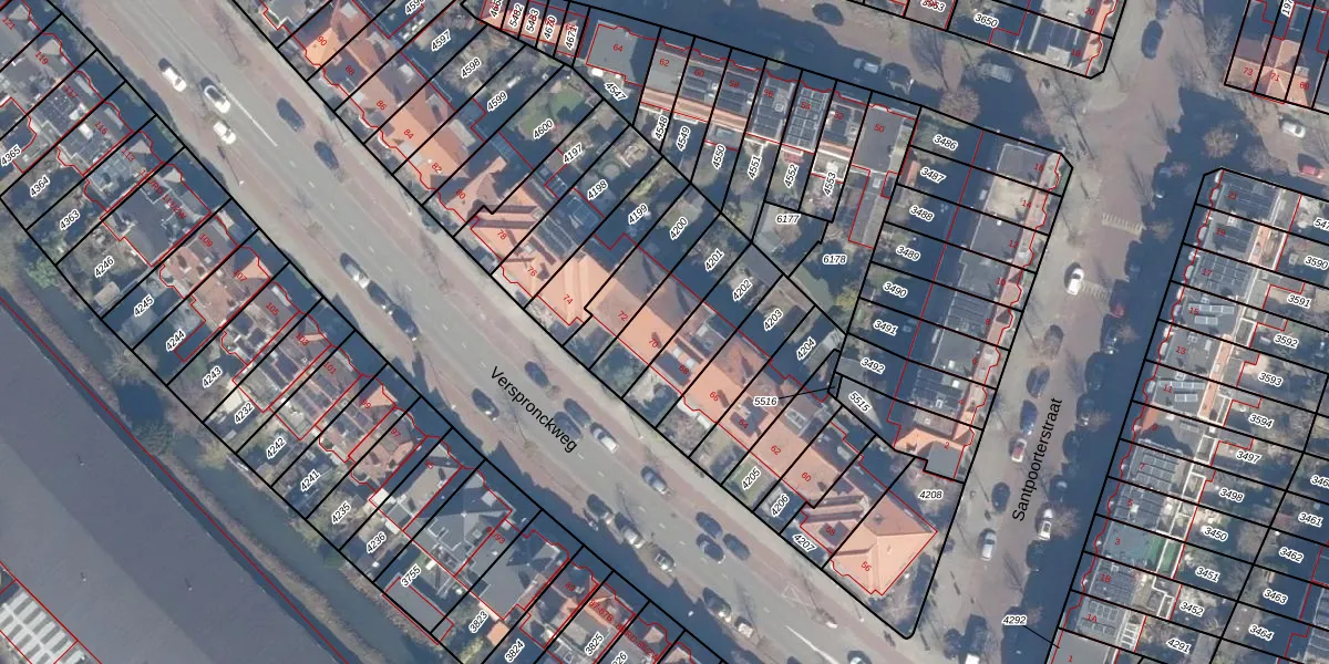 Het perceel waarop Verspronckweg 70 staat heeft een oppervlakte van 206 m². Dit is een middelgroot perceel. De perceeloppervlakte wordt geregistreerd door het Kadaster. Gedetailleerde informatie over de maten van dit perceel kunt u vinden in het rapport Kadastrale kaart met maatvoering van Verspronckweg 70.