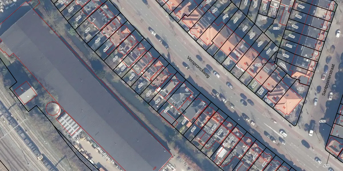 Het perceel waarop Verspronckweg 95 staat heeft een oppervlakte van 176 m². Dit is een middelgroot perceel. De perceeloppervlakte wordt geregistreerd door het Kadaster. Gedetailleerde informatie over de maten van dit perceel kunt u vinden in het rapport Kadastrale kaart met maatvoering van Verspronckweg 95.