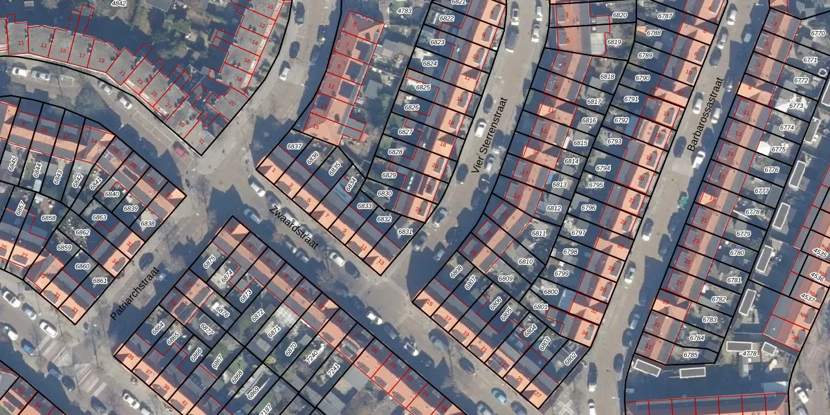 Gebruik de zoekbalk of klik op een perceel voor informatie over de adressen binnen dit perceel.