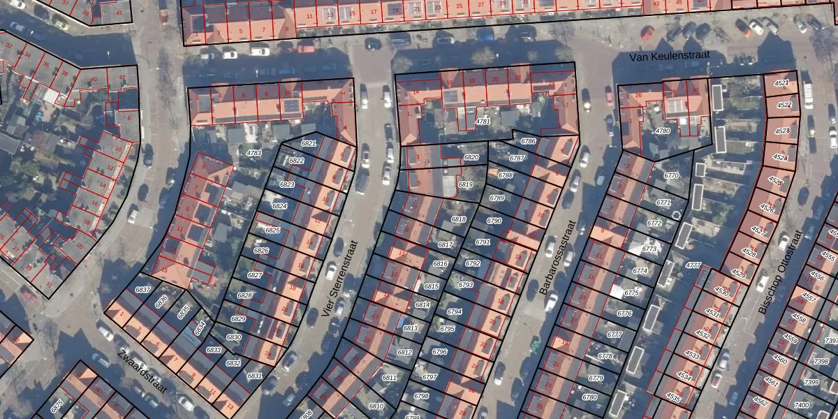 Gebruik de zoekbalk of klik op een perceel voor informatie over de adressen binnen dit perceel.