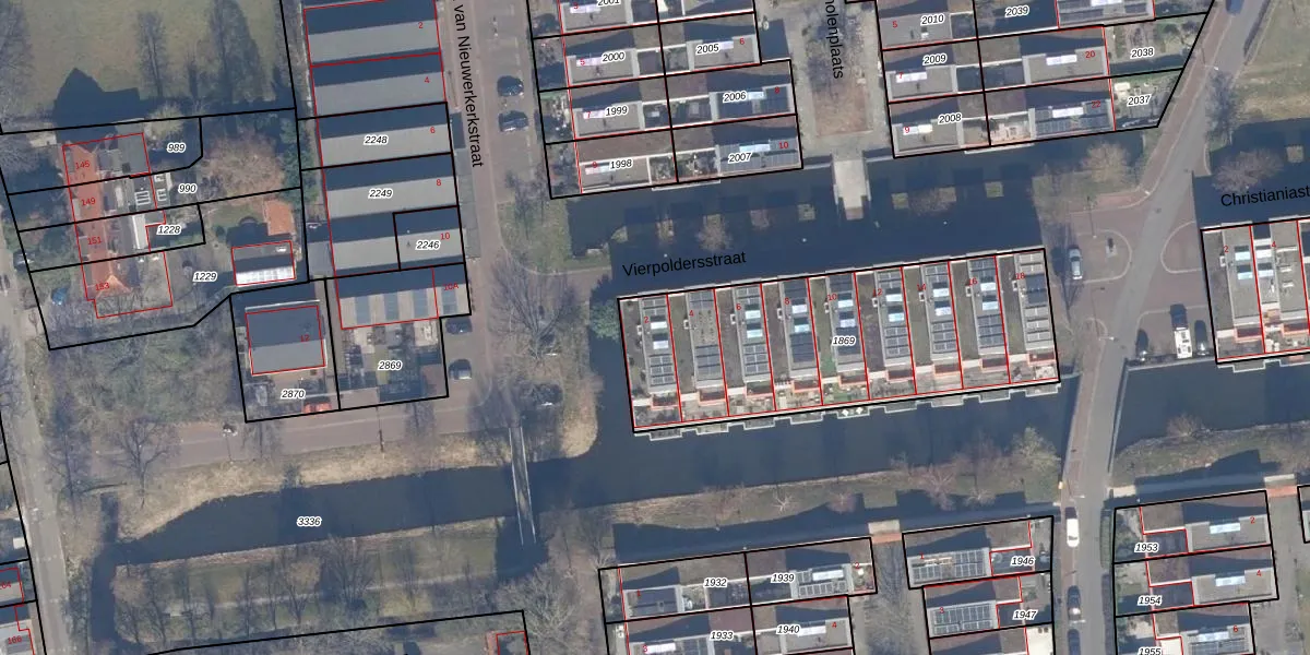 Het perceel waarop Vierpoldersstraat 2 staat heeft een oppervlakte van 1341 m². Dit is een zeer groot perceel. De perceeloppervlakte wordt geregistreerd door het Kadaster. Gedetailleerde informatie over de maten van dit perceel kunt u vinden in het rapport Kadastrale kaart met maatvoering van Vierpoldersstraat 2.