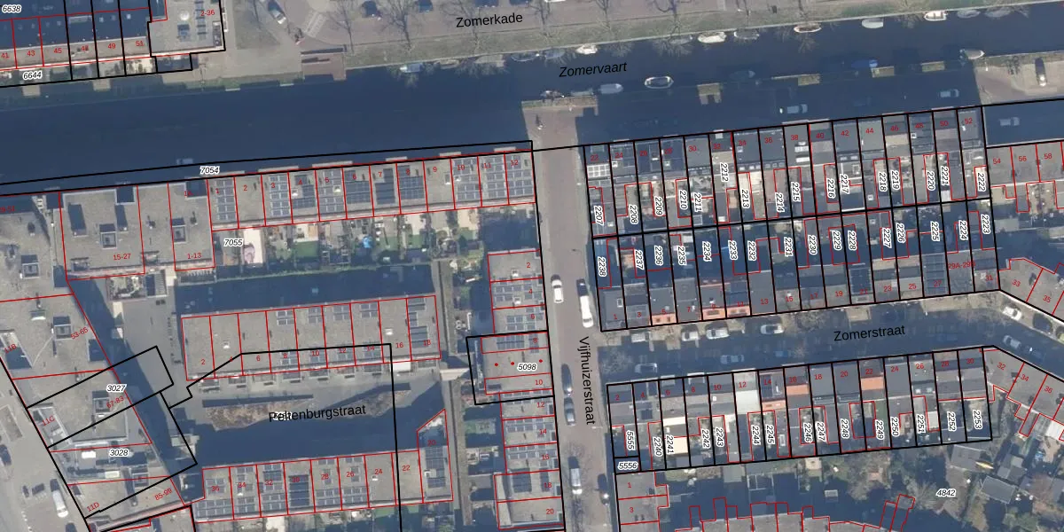 Vijfhuizerstraat 2 is gelegen op kadastraal perceel HLM01E7055. Deze kadastrale aanduiding is uniek en wordt gebruikt door het Kadaster om eigendomsrechten en andere zakelijke rechten vast te leggen. Het perceel maakt onderdeel uit van de kadastrale gemeente Haarlem.