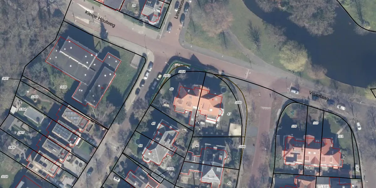 Het perceel waarop Vijverlaan 2 staat heeft een oppervlakte van 542 m². Dit is een groot perceel. De perceeloppervlakte wordt geregistreerd door het Kadaster. Gedetailleerde informatie over de maten van dit perceel kunt u vinden in het rapport Kadastrale kaart met maatvoering van Vijverlaan 2.